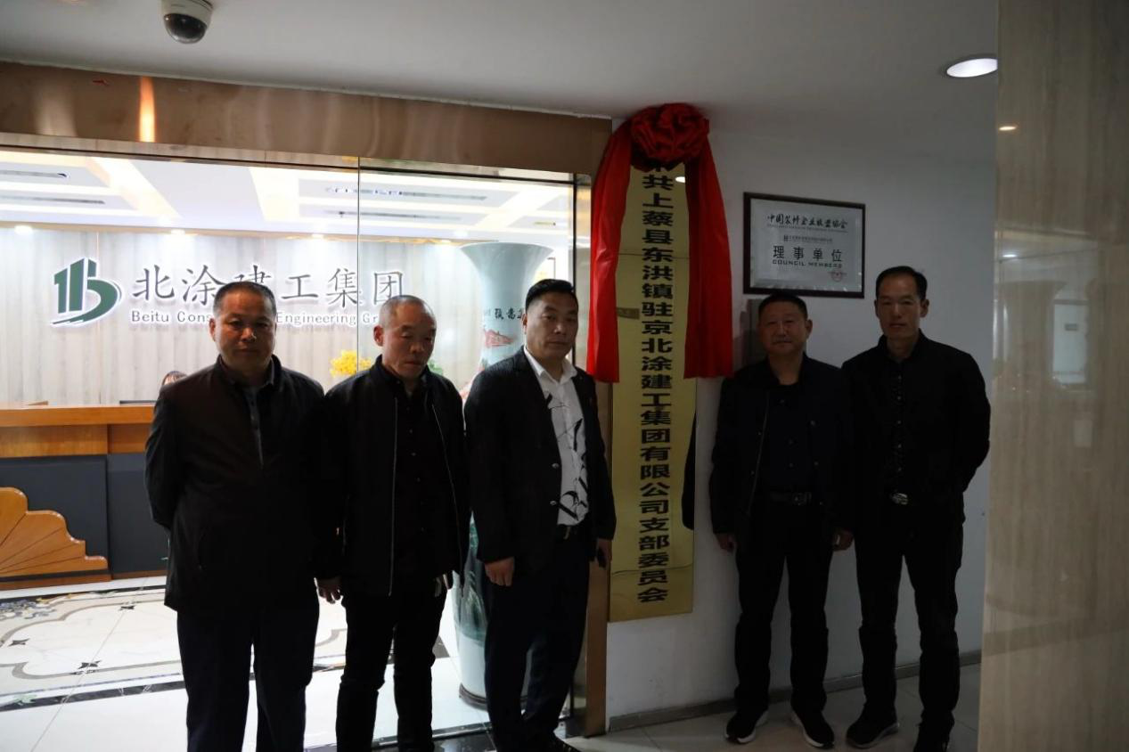 2020年9月20日,中共上蔡县东洪镇驻京北涂建工集团有限公司支部委员会成立大会暨揭牌仪式在中共上蔡县东洪镇委、镇政府、镇委组织部的正确指导下,在北涂建工集团有限公司董事长的关心支持以及全体党员的热情参与下,会议取得圆满成功。