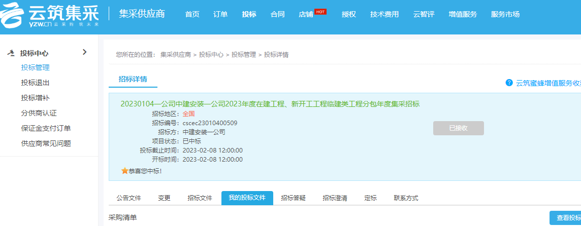 中建安装一公司2023年度在建工程、新开工工程临建类工程分包年度集采招标