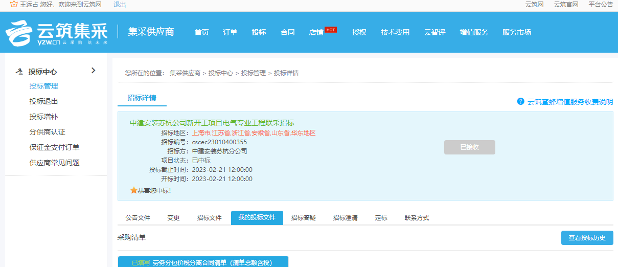 中建安装苏杭公司新开工项目电气专业工程联采招标
