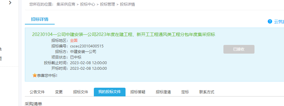 中建安装一公司2023年度在建工程、新开工工程通风类工程分包年度集采招标