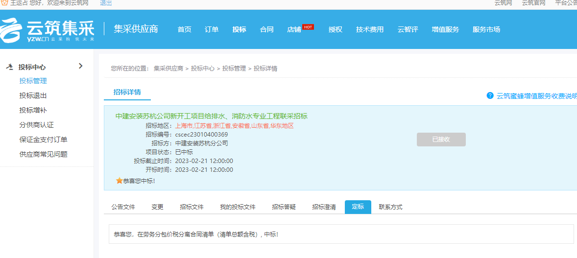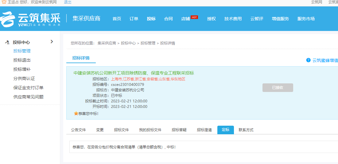 再度中标中建安装苏杭公司多个项目