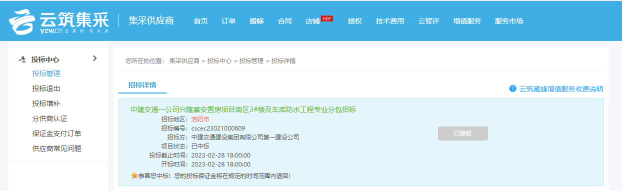 继日前中标中建安装一公司多个集采项目以后,于近日再传中标喜讯。成功中标中建交通一公司兴隆寨安置房项目南区3#楼及车库防水工程专业分包招标项目。