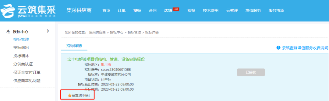 宝丰电解液项目钢结构、管道、设备安装标段招标工作圆满结束,经评标委员会评定和招标工作小组定标,北涂建工集团为中标单位,中标标的:劳务分包价税分离合同清单。